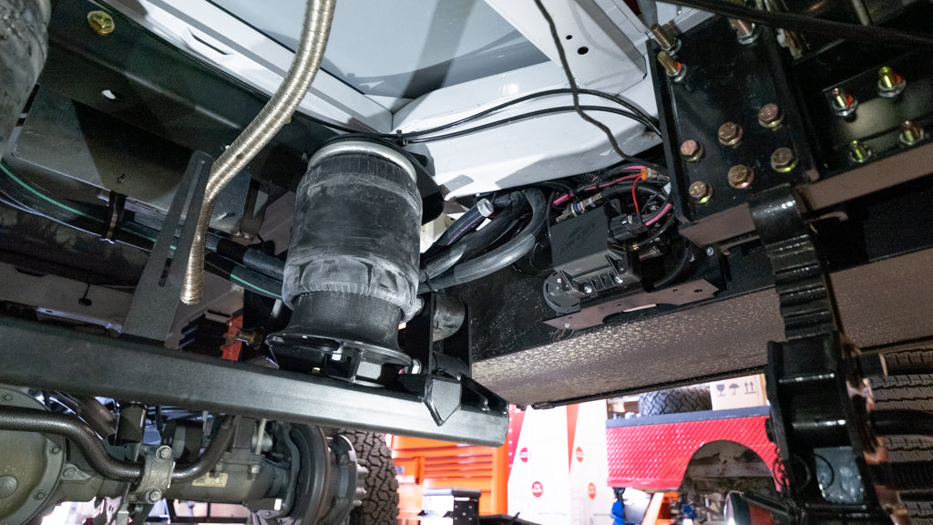 Factory leaf springs were designed to carry heavy loads as their primary function. With the addition of a Kelderman 2-Stage Rear Air Suspension, the bumps are absorbed by the air suspension rather than the leaf springs. Kelderman suspension provides 3-4″ of additional travel that the chassis did not have before, resulting in a smoother ride. This proven design has been in production for over 25 years and is the ultimate addition you’ve been searching for to further improve the ride of your Sprinter. All 2-Stage Rear Air Suspension Systems will come in a black, painted finish. This kit is compatible only with the 3500 dual rear wheel, long-wheelbase (170″) models. Exhaust modification is required.