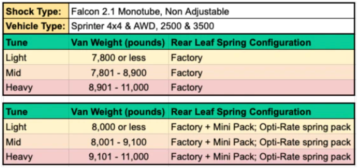 Falcon 2.1 Monotube Shocks, expertly tuned for van users, dramatically improve handling. With superior construction and a larger, more effective damper piston, these shocks will completely change the driving dynamics of your van. A more effective damper reduces leaning in corners, violent swaying, and smooths out jarring impacts. This in turn increases comfort and safety factor, while reducing driver fatigue.