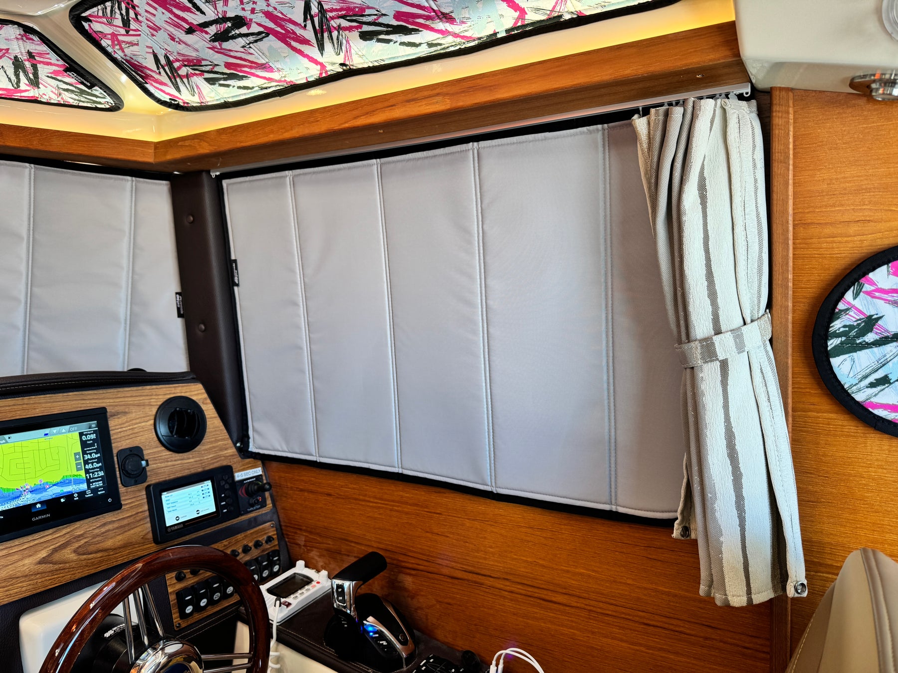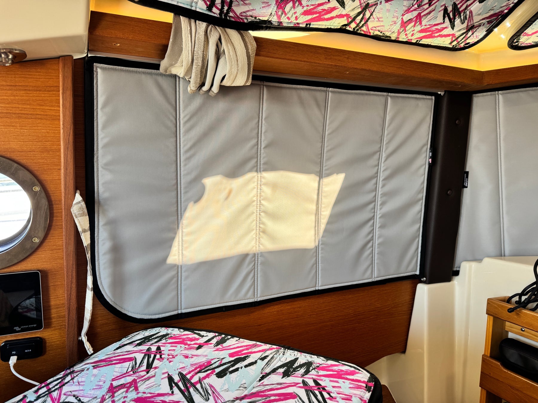 Living in Florida with unbearable heat, we needed to find a solution to help insulate the inside of the Ranger Tug. We turned to our experience in adventure vans to build the most effective interior shades we possibly could!Created in Portland, OR, for us by longtime shade maker Van Made Gear, who is the industry standard for adventure van and RV window covers.