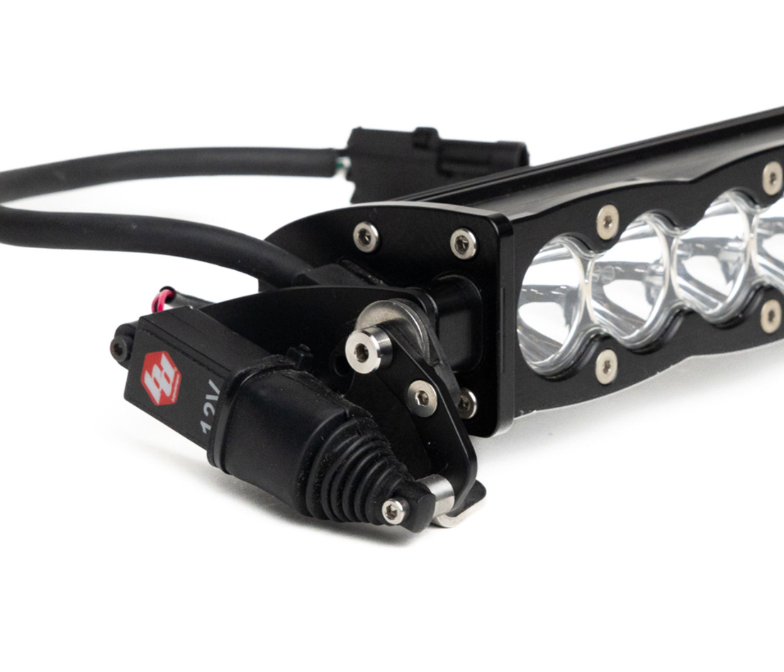 Introducing the Reflex Light Actuator™ (Patent Pending) – the first fully compatible actuator system designed exclusively for the Baja Designs light lineup. Born from racing in Baja, the Reflex brings professional race-level engineering to a consumer-ready solution. Engineered exclusively for our lights, the Reflex delivers instant, on-the-fly control of light pitch angle. Drivers can adjust their light up to 20 degrees depending on light type, ensuring perfect light coverage for every terrain change, climb, descent, or high-speed section. The Reflex mounts directly to existing Baja Designs light brackets with included hardware. No fabrication, no guesswork, just clean installation and plug-and-play setup. This actuator kit is compatible with S8 light bars. NOTE: Wiring harness sold separately.