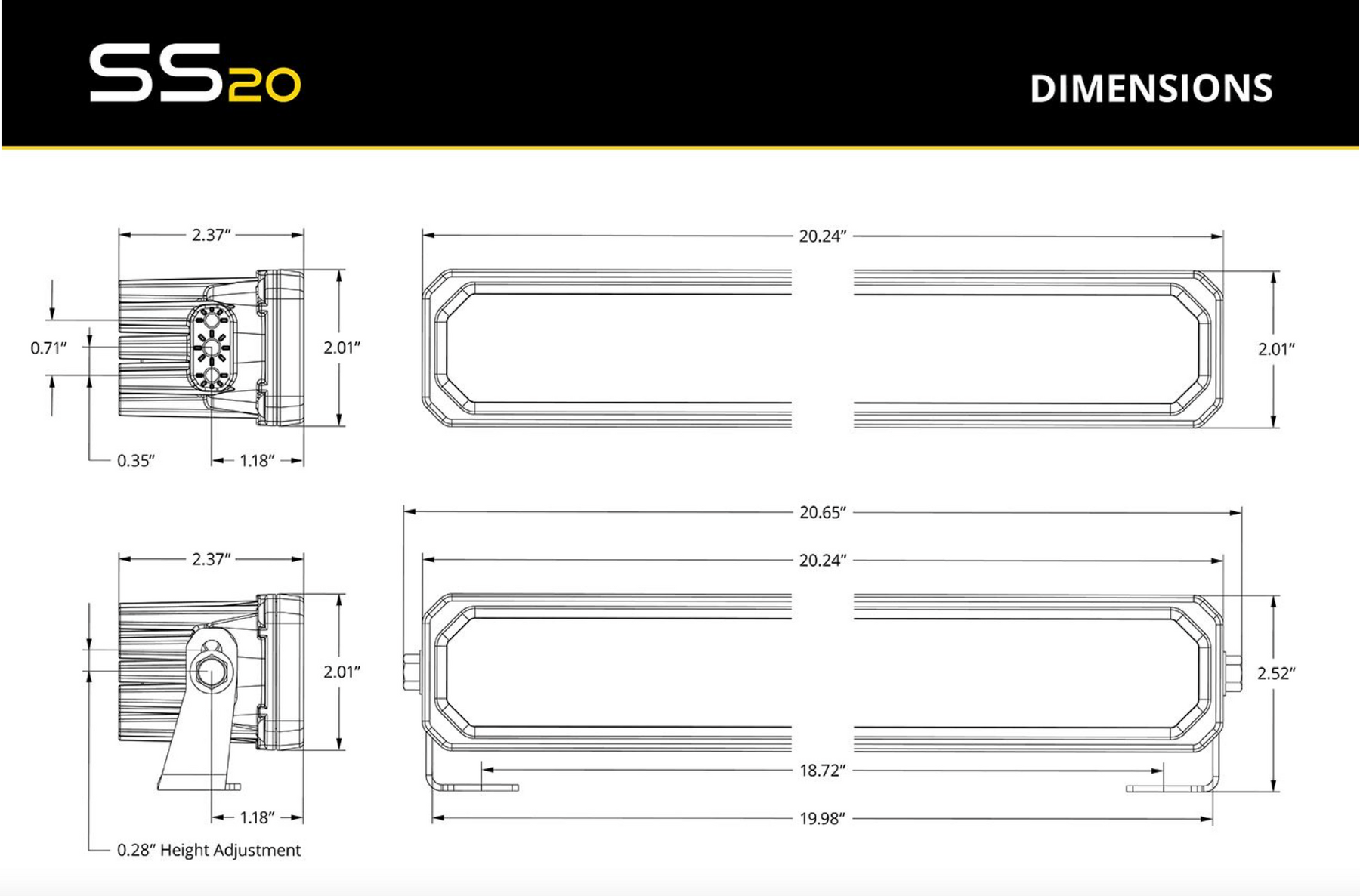 Choose Your Power Level. The SS20 LED Light Bar is available in two different power levels. Both options use high-intensity, automotive-grade LED emitters and TIR optics for unmatched focus and output. The Sport model offers the best bang for your buck, while the Pro model takes things a step further with a noticeable boost in power.
