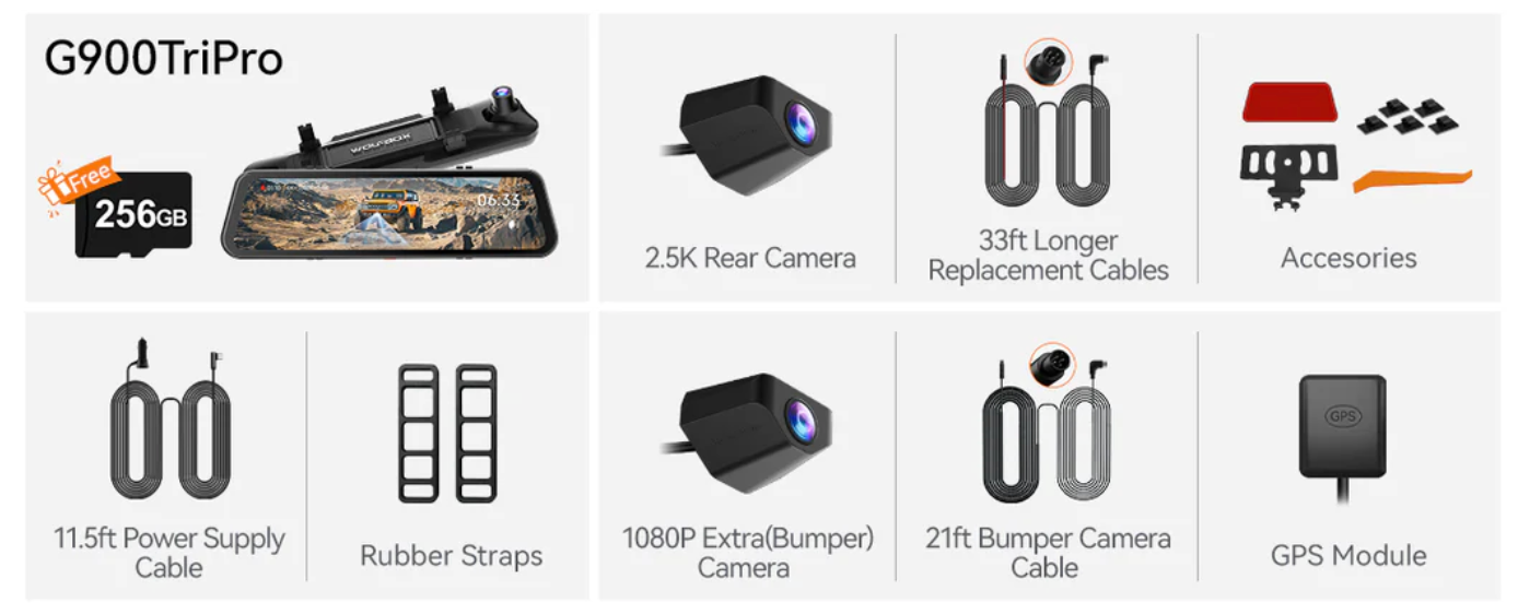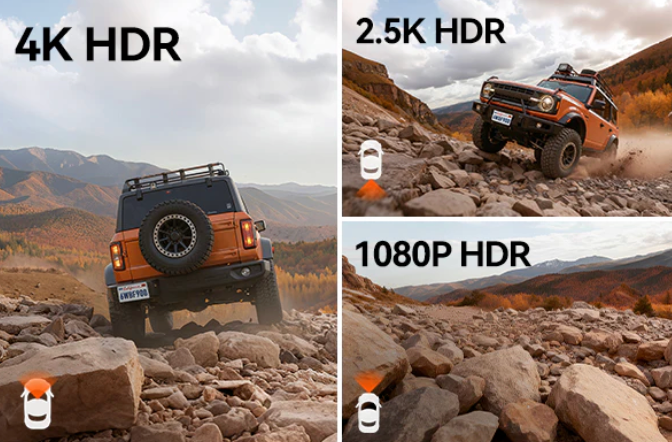 -Triple HDR: 4K front, 2.5K rear, 1080P bumper—wide FOV captures every detail.