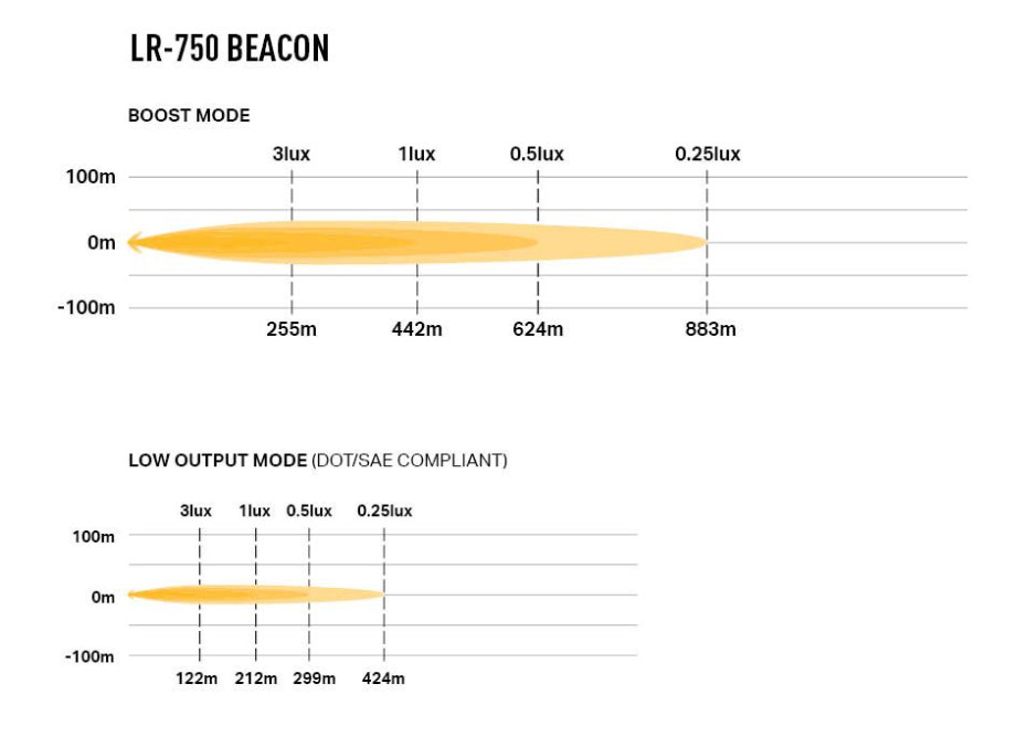 The LR-750 delivers a spot beam pattern well suited to road use. The lamp itself has a clean contemporary design, with a more aggressive edge, to match the aesthetic design prevalent on modern vehicles. Boasting an impressive 5,400 lumen, and delivering 1 lux to 442m, the auxiliary LED driving light provides good left/right spread of light with a 28deg horizontal spread of light. The lamp is compliant with SAE/DOT standards as a high beam driving light, through adoption of Triple-R’s dual output technology; controlled via quickly flashing the light off/on, the light can be quickly dimmed for avoiding glare when passing road-signs for example (flash-to-dim), or at any time programmed to always work in the high or low output modes, with the low output mode complying to the SAE/DOT standards as an high beam driving light.