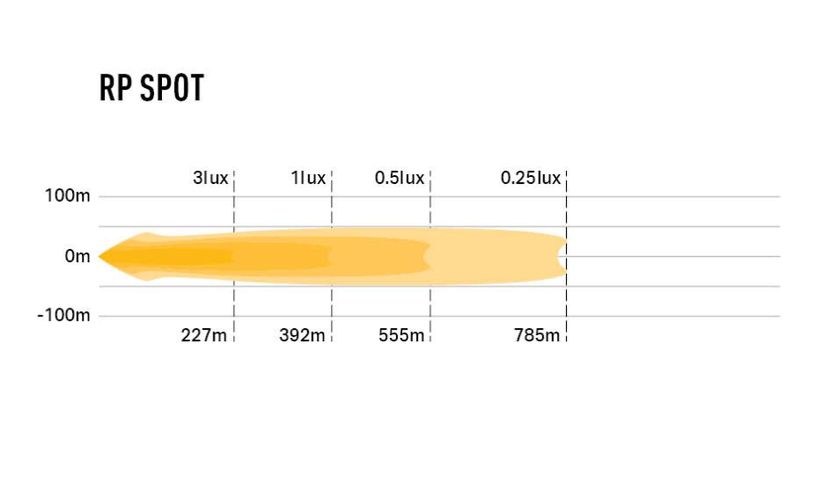 The RP Spot is an âoff-roadâ LED light built for performance and durability. Boasting 4x premium-bin 20W LEDs, the lamp produces 8,940 raw lumens which combine with the ultra-reflective, vacuum-metallised âboostâ optics specially designed and engineered to deliver light over an impressive distance (1 lux @ 392m), but still with 20 degrees left/right spread of light.