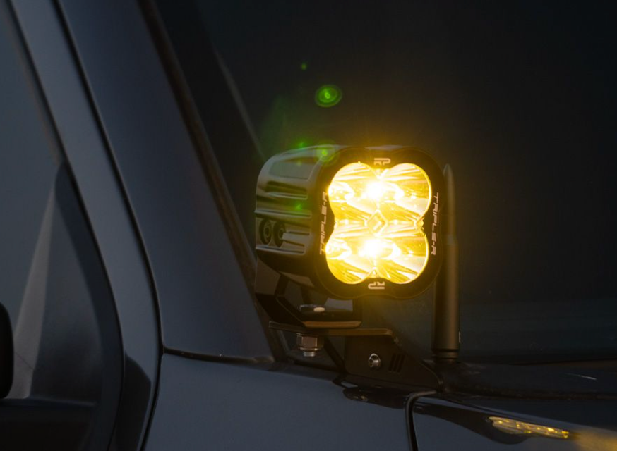 Now available with high-efficiency yellow LEDs, the RP Spot Yellow is an ideal solution for riding in dust, fog, rain, or snow. The yellow light cuts through the haze, giving you clearer vision and less glare. It's a smarter, cleaner alternative to using a yellow lens cover, especially for those in the adventure bike, ATV, and UTV scenes who demand reliability in all-weather, all-terrain conditions. A black âTriple-Râ branded lens cover is included with each light.