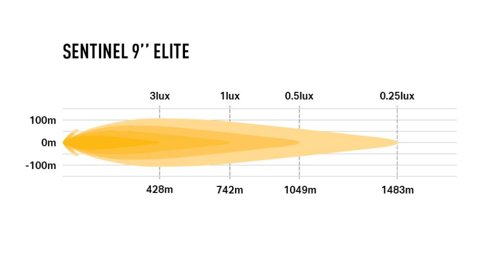 Light distribution graph in lux per meter for the Sentinel 9 Elite