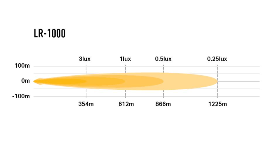 At 16â in length and weighing just over 3lbs, the LR-1000 is built tough yet delivers a serious punch despite its lightweight design. âPremium binâ high intensity LEDs, upgraded in 2020/1, deliver 9240 raw lumen at a natural 5000k color temperature. The long-range lighting is supplemented by a 19 degree spread of light ensuring a comfortable night drive experience, even over prolonged periods of time.