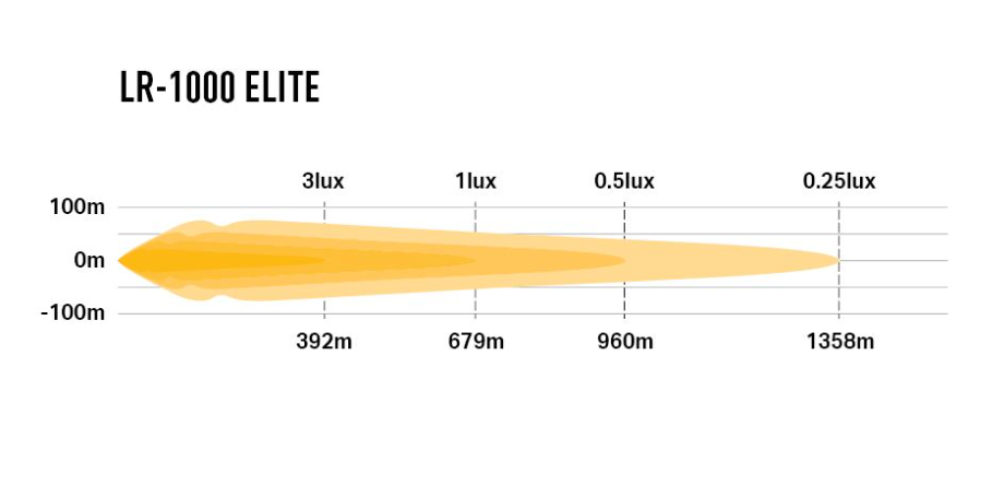 Lighting distribution graph in lux per meter for the LR-1000 Elite light bar