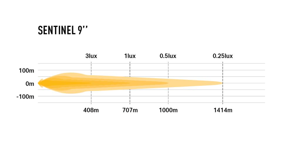 Light distribution graph in lux per meter for the Sentinel 9 Elite