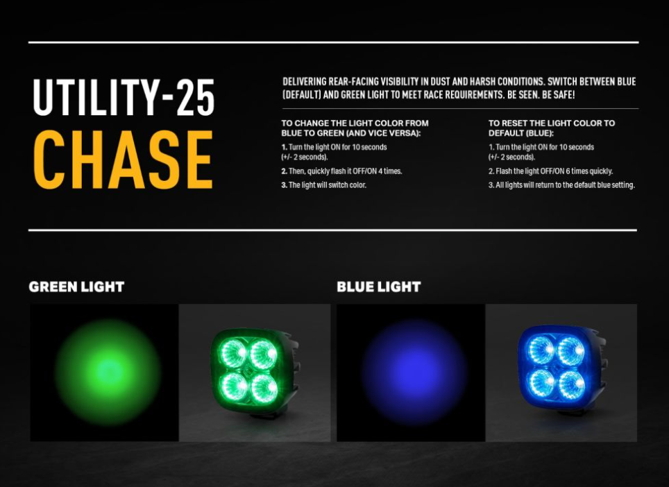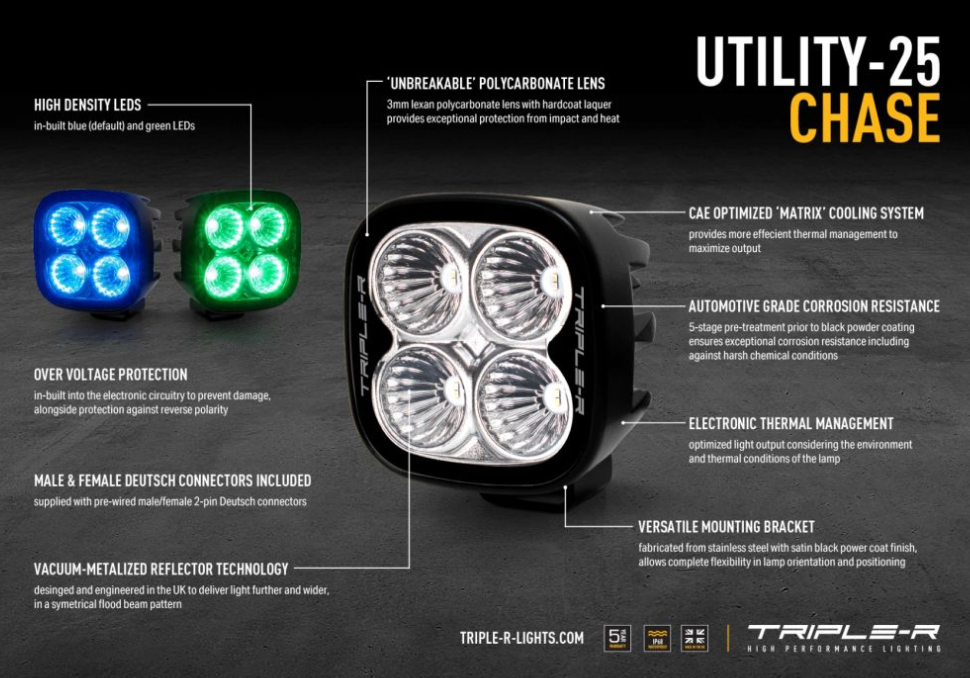 The Utility-25 Chase is designed for off-road and racing use to improve rear visibility in rain, or fog, keeping your vehicle seen and your convoy safe.